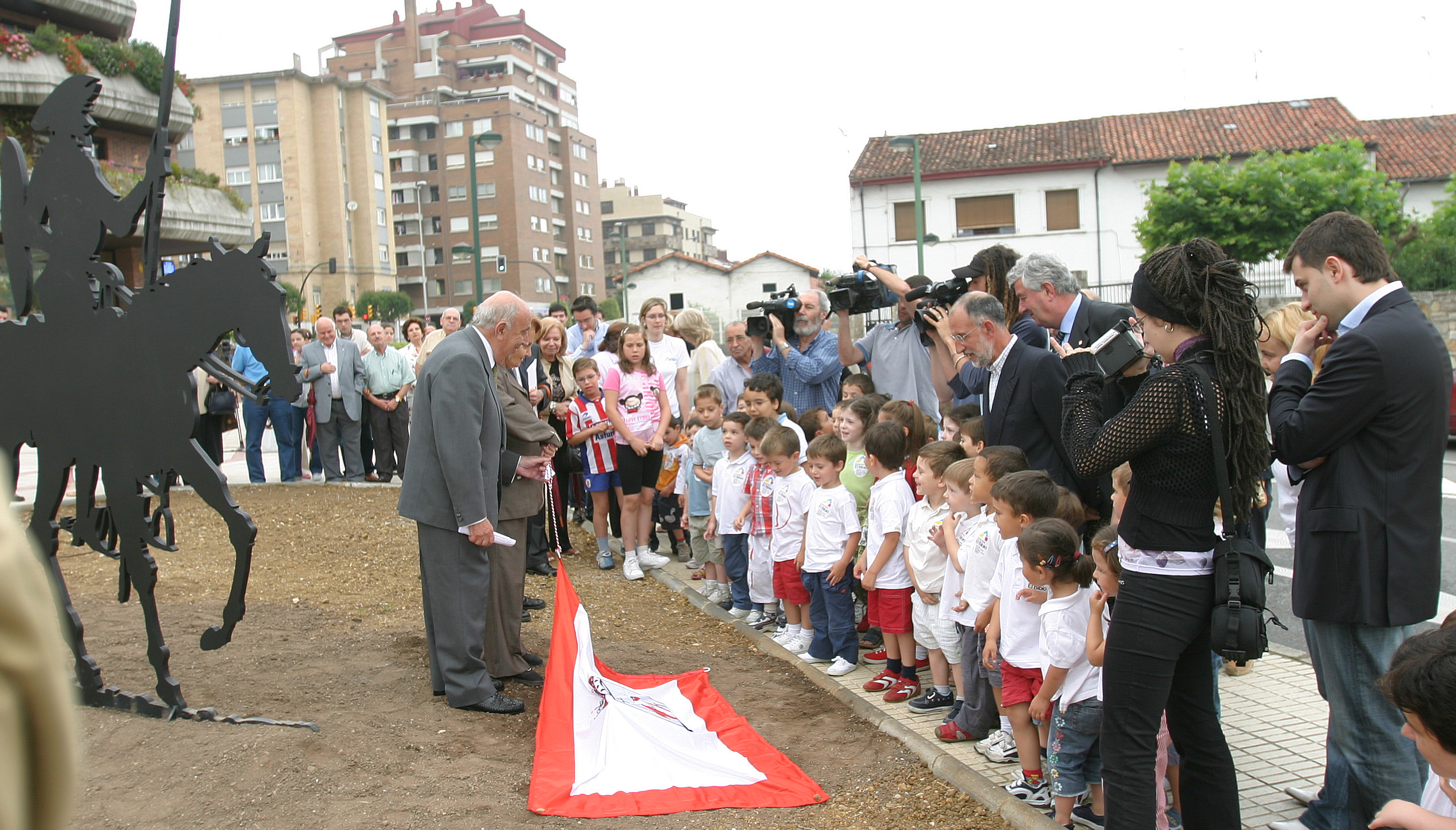 24.6.2005. Inauguración de la escultura de Don Quijote y Sancho en Viesques. Foto: Joaquín Bilbao (Muséu del Pueblu d’Asturies.